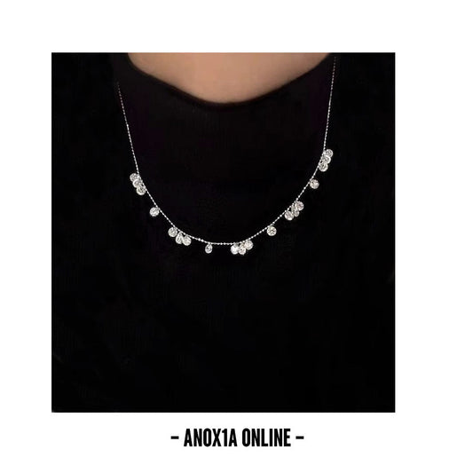 Celestial Fringe: Silver-Plated Zirconia Tassel Choker Necklace