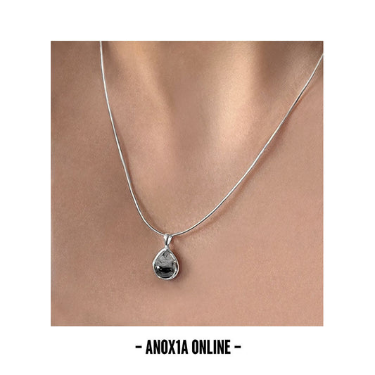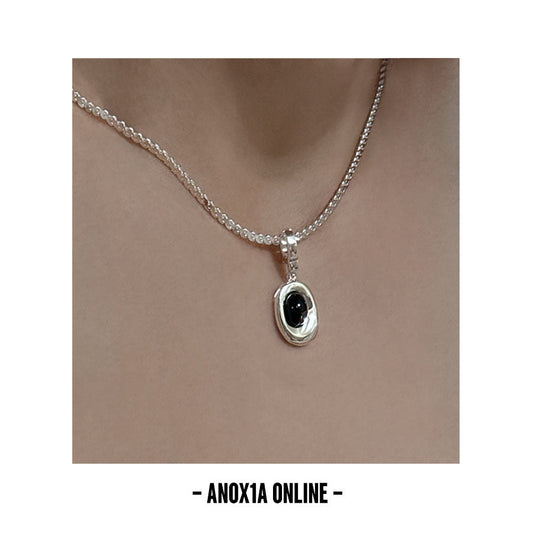 Modern and Bold 925 Sterling Silver Necklace with Exquisite Black Agate Pendant