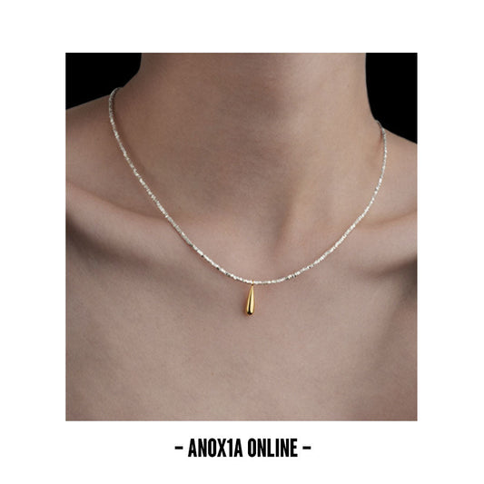 Radiant 925 Silver Necklace with Golden Teardrop Pendant: Modern Elegance