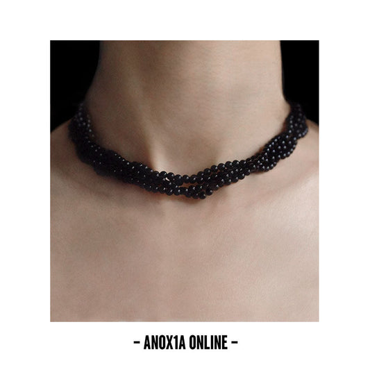 Radiate Bold Elegance with Our Natural Quad-Strand Black Agate Beaded Necklace