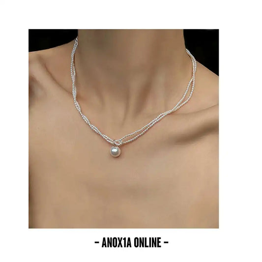 Sophisticated Simplicity: Double-Strand 2mm Pearl Necklace with 12mm Pendant