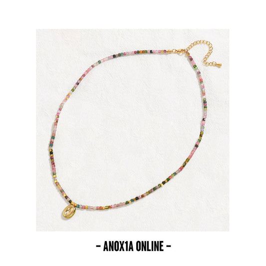 Multi-colored Natural Tourmaline Bead Necklace with Stainless Steel PendantRegular price $39.00USDRegular priceUnit price per-