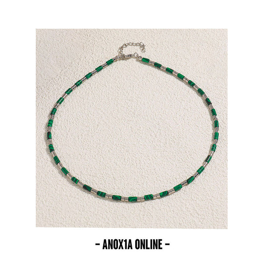 Unisex Malachite and Silver Metallic Bead NecklaceRegular price $41.00USDRegular priceUnit price per-
